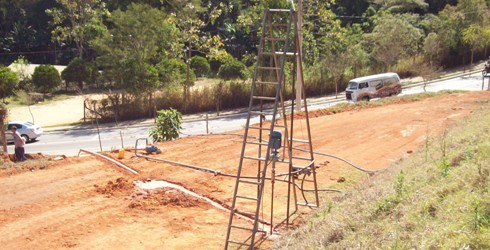 - Perfurações de piezômetro para monitoramento de lençol freático.